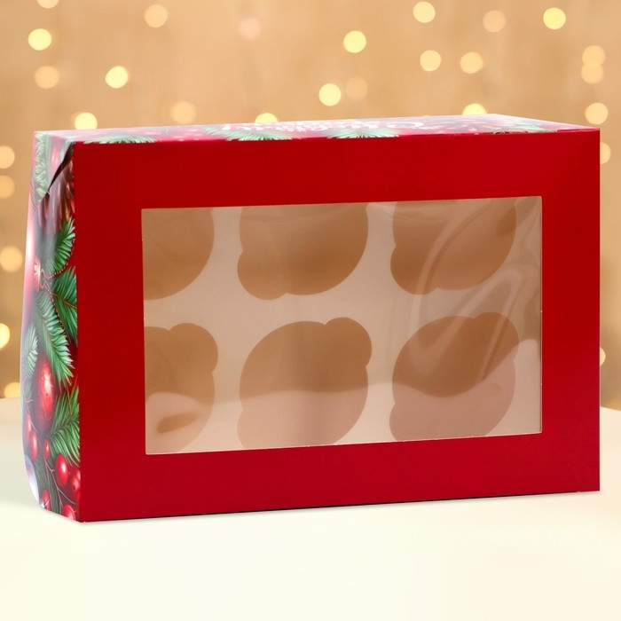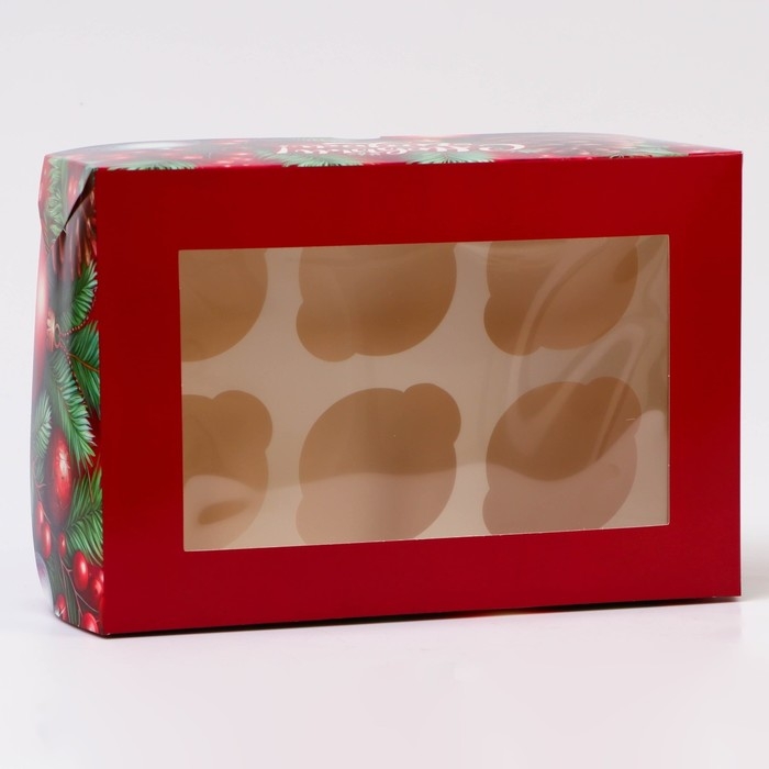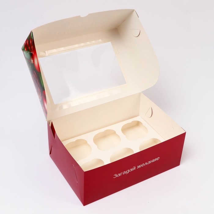 Новый год. Коробка для 6 капкейков с окном "Загадай желание", 25 х 17 х 10 см, упаковка