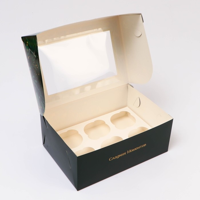 Новый год. Коробка для 6 капкейков с окном "Сладких моментов", 25 х 17 х 10 см, упаковка