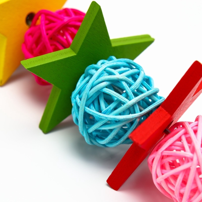 Разноцветные бусины делают игрушку яркой и привлекательной. Птицы, как правило, любят яркие цвета, и такие элементы вызывают у них интерес, что побуждает к активной игре и обеспечивают хорошее настроение.