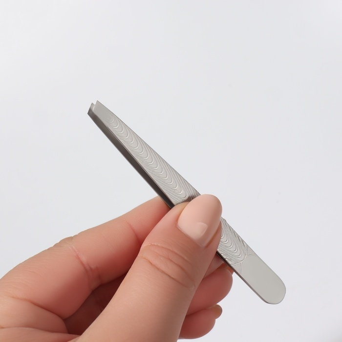 Пинцет скошенный, широкий, 10,7 см, цвет серебристый