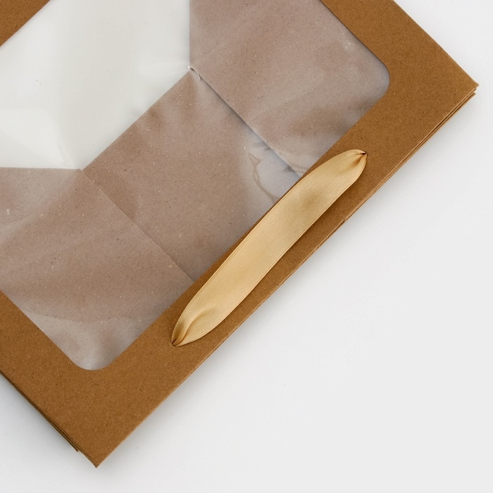 Пакет подарочный с широким дном и окном 25 х 19 х 18 см, крафт