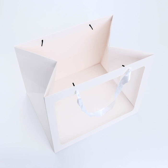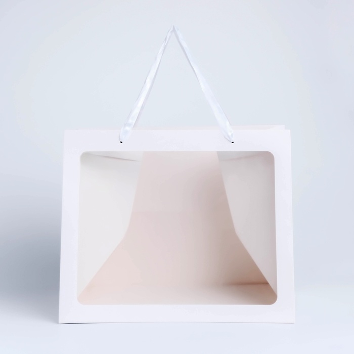 Пакет подарочный с широким дном и окном 35 х 29 х 28 см, белый