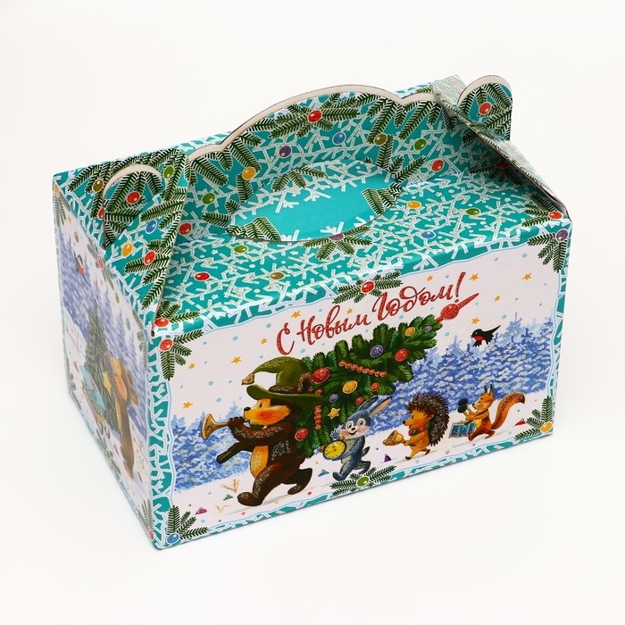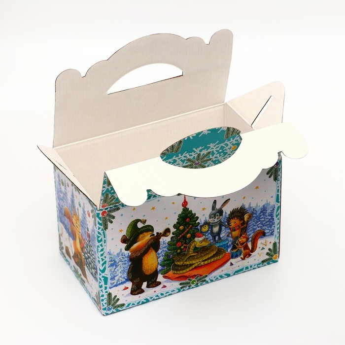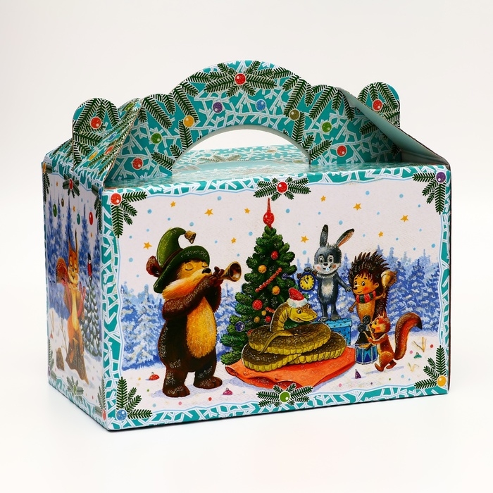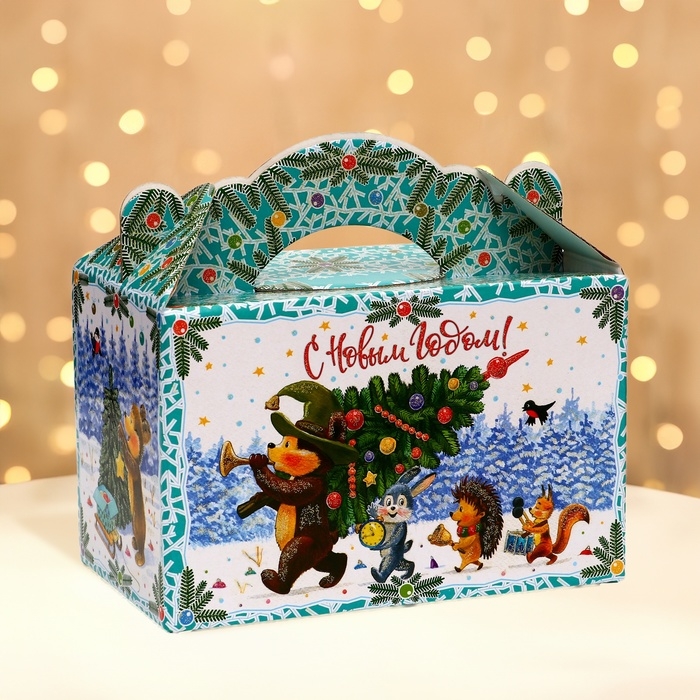 Подарочная коробка "Лесные гости" новогодняя Чемоданчик средний 20 x 12 x 19 см