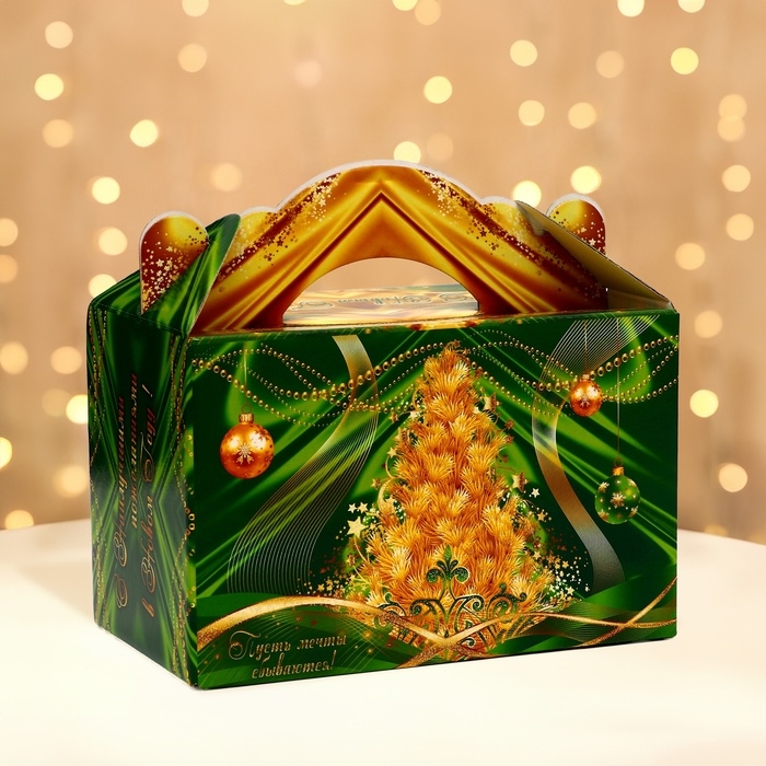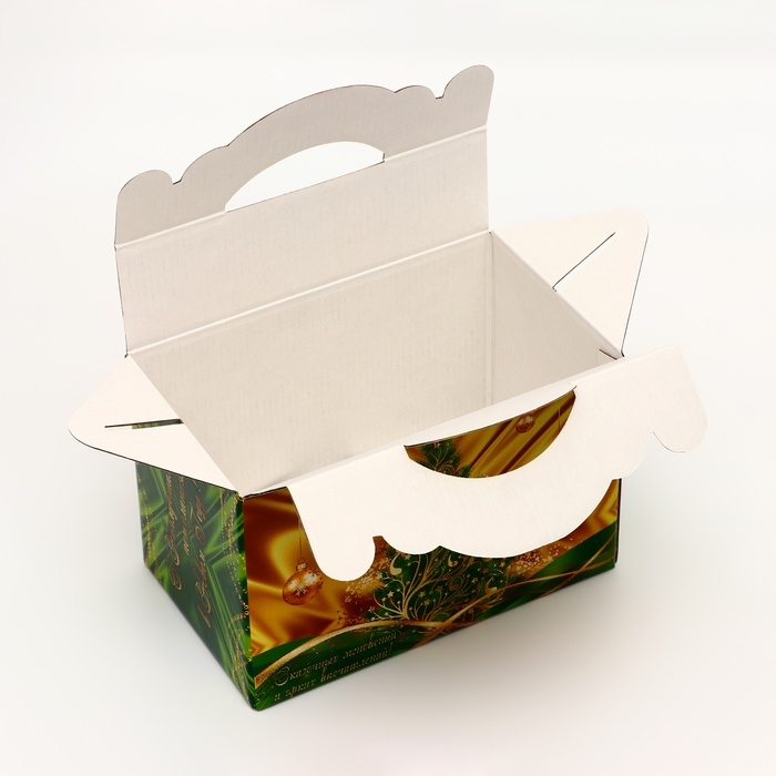 Коробка выполнена из качественных материалов, которые обеспечивают сохранность содержимого. Она имеет яркий и красочный дизайн, который отражает атмосферу Нового года.