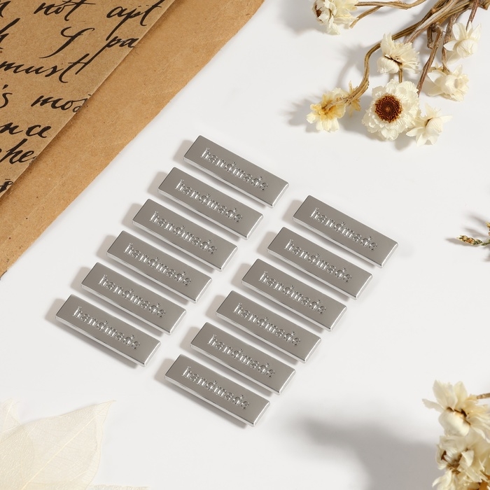 Декоративные элементы на прокол «Hand made», 3,5 × 1 см, 10 шт, цвет серебряный