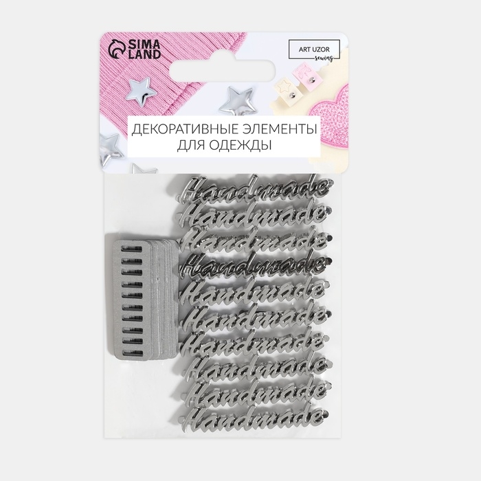 Декоративные элементы на прокол «Hand made», 5,4 × 1 см, 10 шт, цвет серебряный