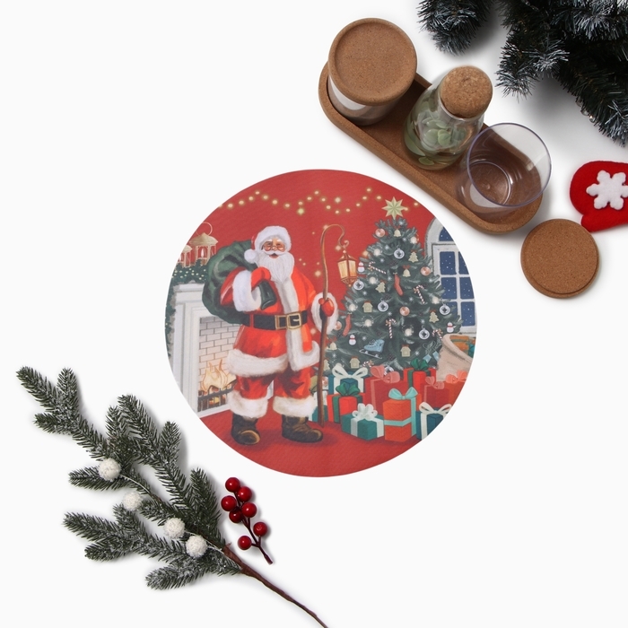 Новый год. Салфетка на стол "Санта" 30х30см, 100% п/э, оксфорд 420 г/м2