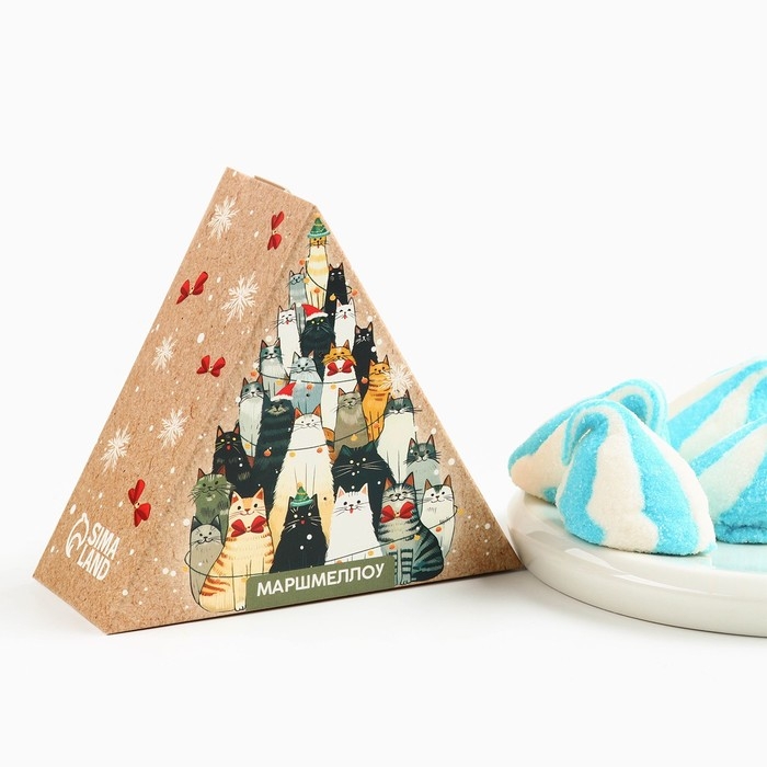 Новый год! Маршмеллоу в виде колпочка «Котики», со вкусом малины, 38 г