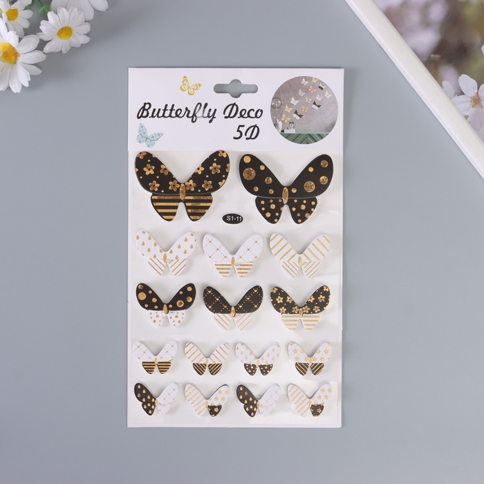Наклейка интерьерная PVC "Рой бабочек" чёрно-белые 26х15,5 см