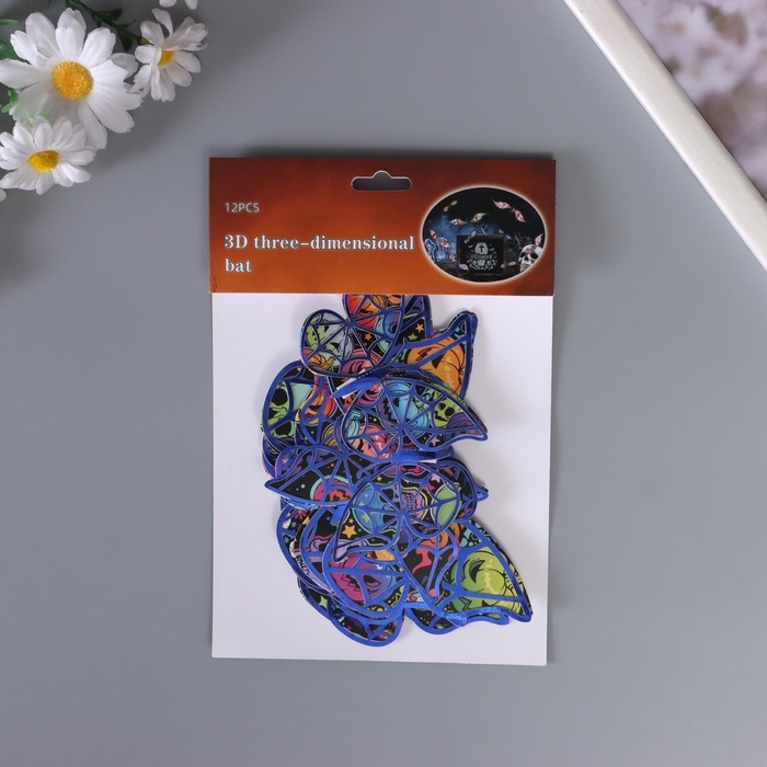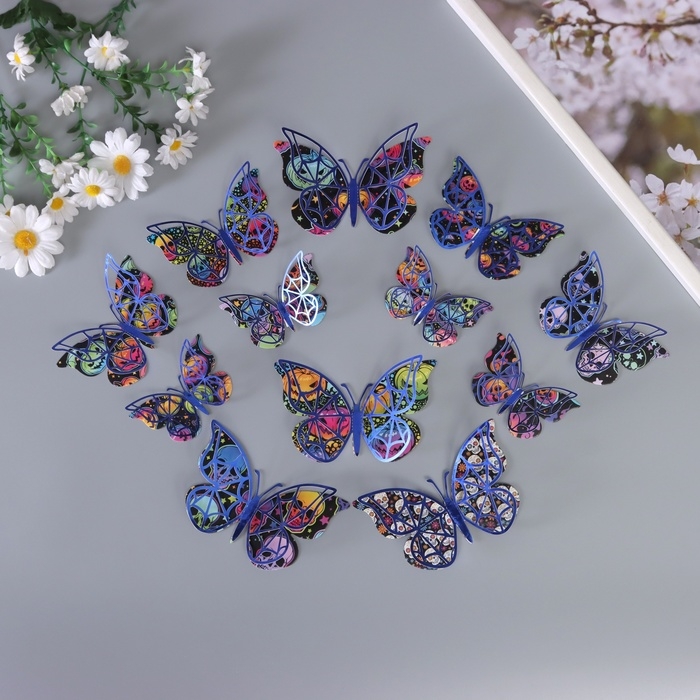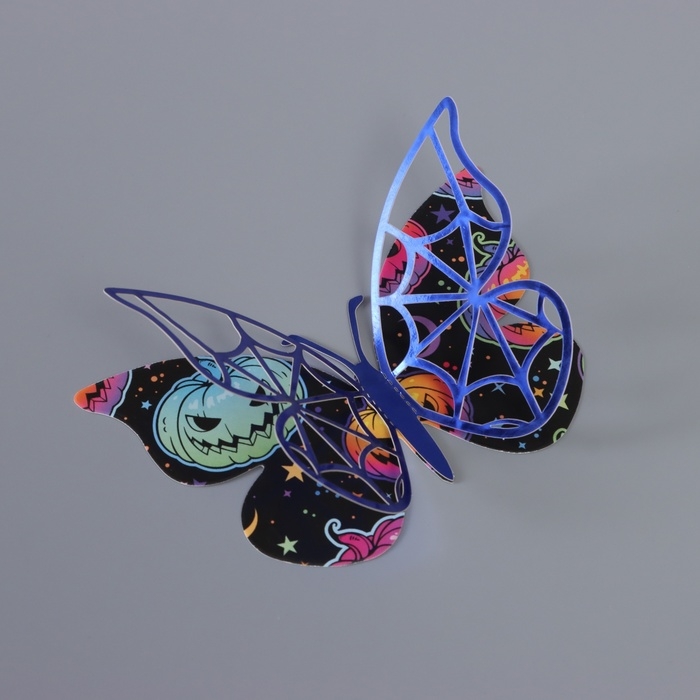 Наклейка бумага, пластик "Бабочки на Хэллоуин" синие набор 12 шт