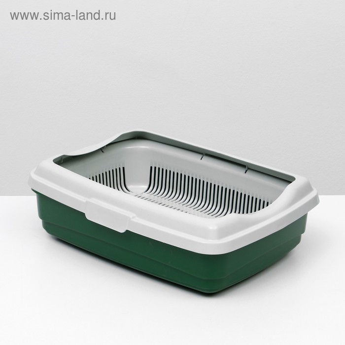 Пластиковый лоток для кошек с бортами удобен в использовании. Борт крепится защелками.