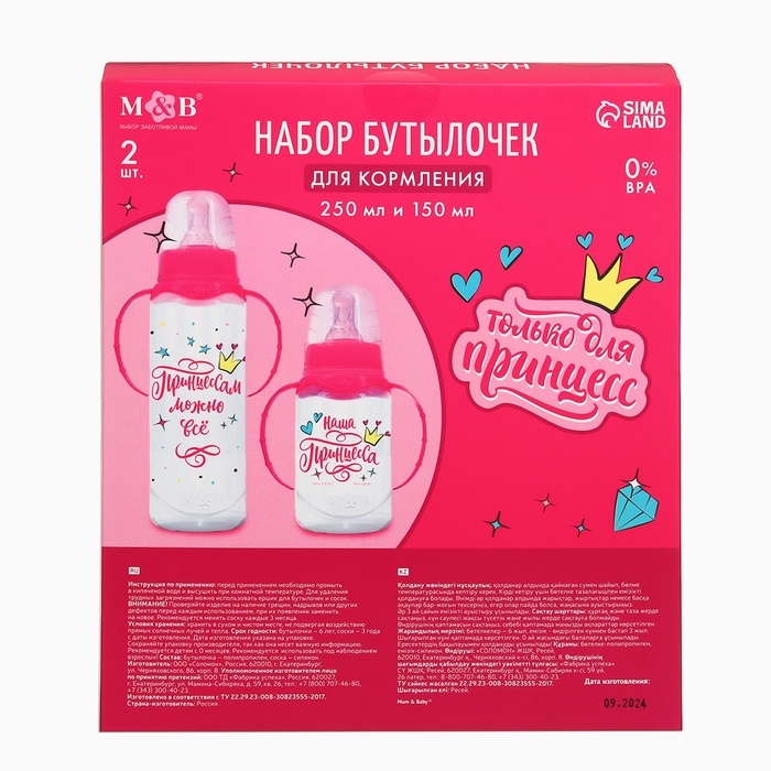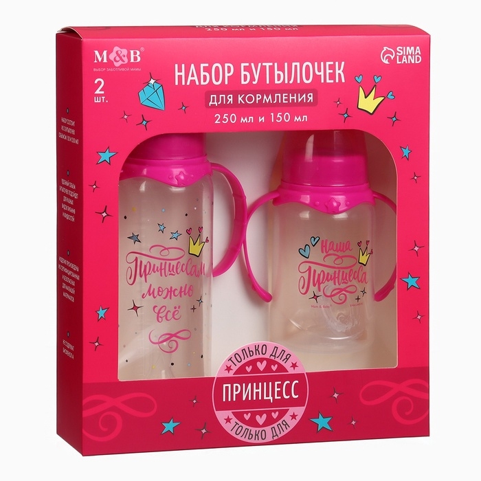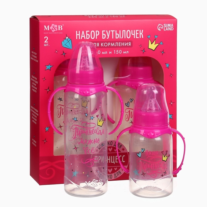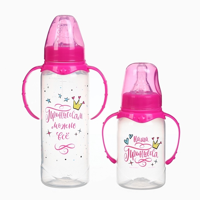 Набор бутылочек для кормления «Любимая доченька» 150 и 250 мл, прямые, цвет розовый