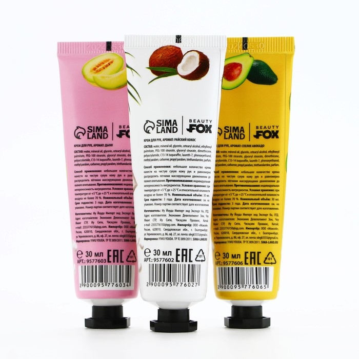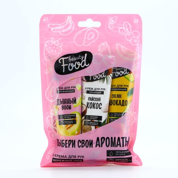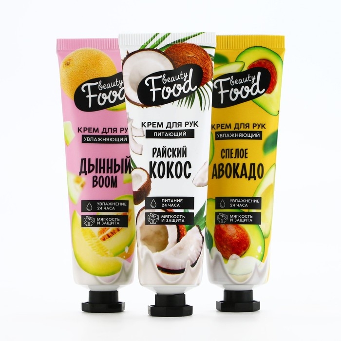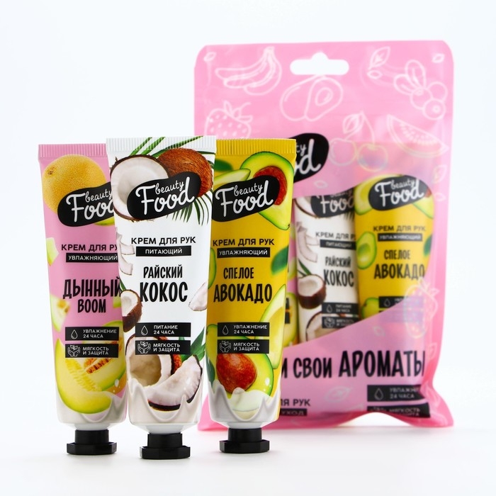Подарочный набор косметики, кремы для рук, 3 х 30 мл, аромат авокадо, дыни и кокоса, BEAUTY FOOD
