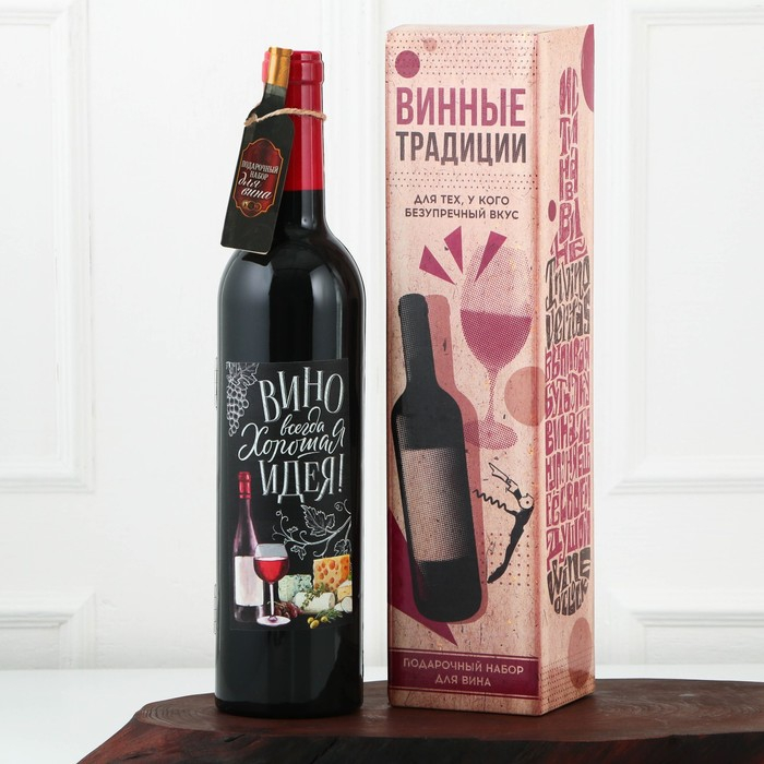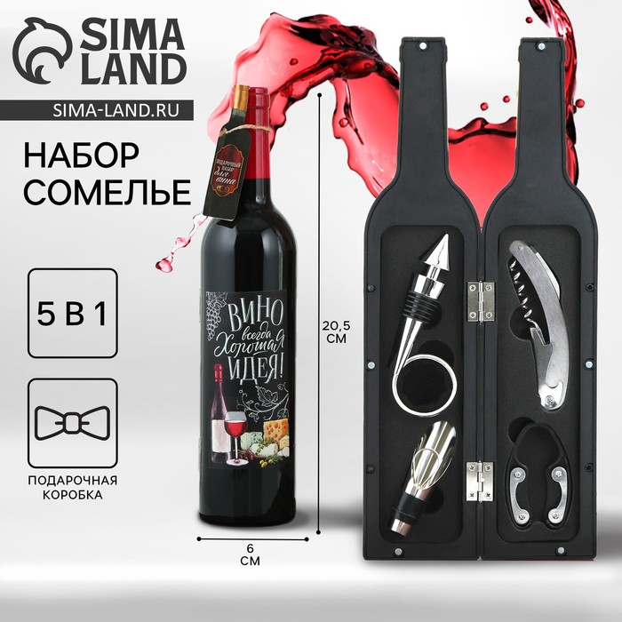 Винный набор: штопор, аэратор, каплеулавливатель, пробка для бутылки вина и нож для фольги «Вино всегда хорошая идея».