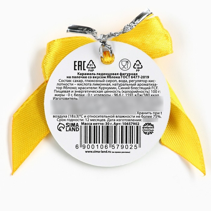 Новый год! Леденец на палочке «Талисман здоровья», вкус яблоко, 30 г