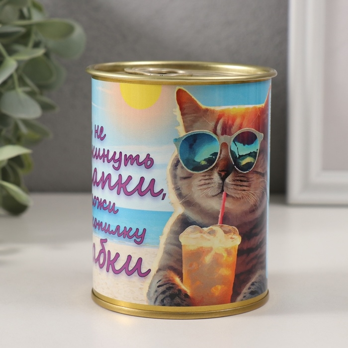 Копилка-банка металл "Чтобы не откинуть лапки положи в копилку бабки"