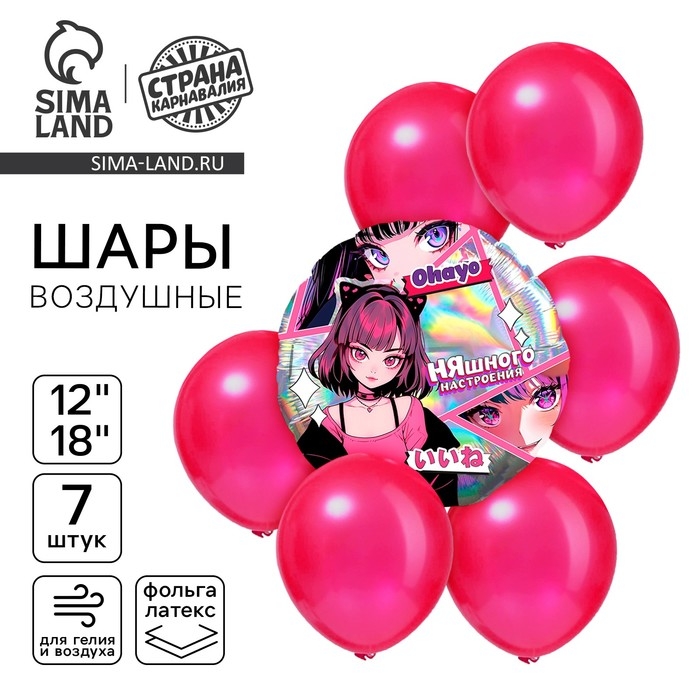 Набор воздушных шаров "Аниме. Няшка", голография, 7 шт.