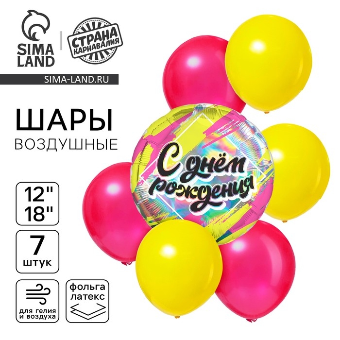 Набор воздушных шаров "С днём рождения", голография, 7 шт.