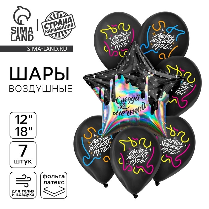Набор воздушных шаров "Следуй за мечтой, она укажет путь", голография, 7 шт.