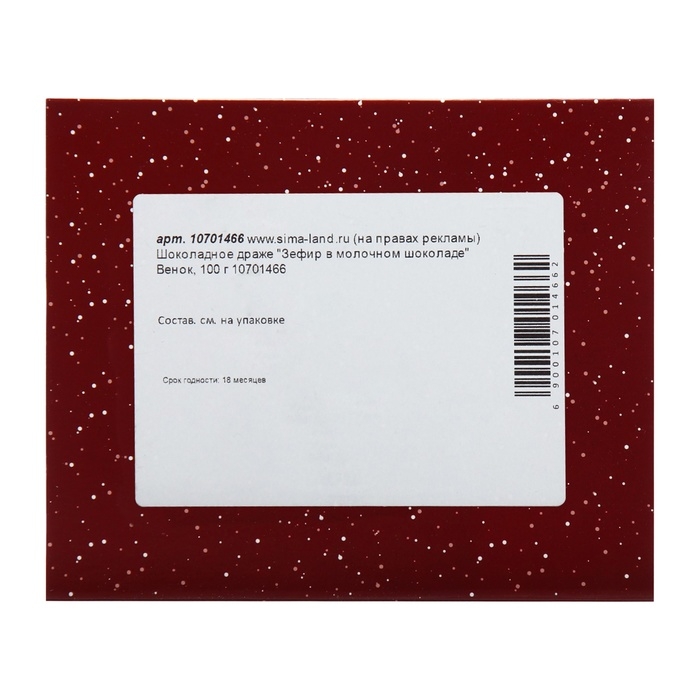 Новый год. Шоколадное драже "Зефир в молочном шоколаде" Венок, 100 г