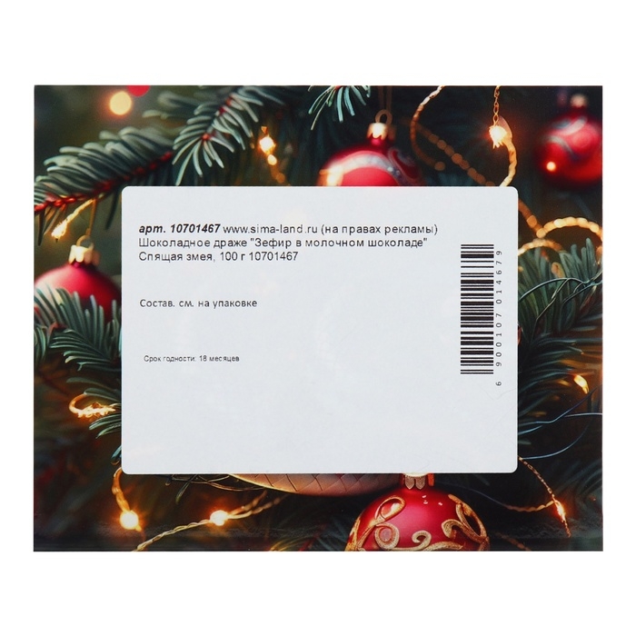 Новый год. Шоколадное драже "Зефир в молочном шоколаде", спящая змея, 100 г