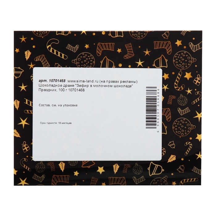 Шоколадное драже "Зефир в молочном шоколаде" — это угощение, которое станет восхитительным подарком на Новый год! Каждый кусочек этого нежного зефира, покрытый молочным шоколадом, дарит истинное наслаждение.