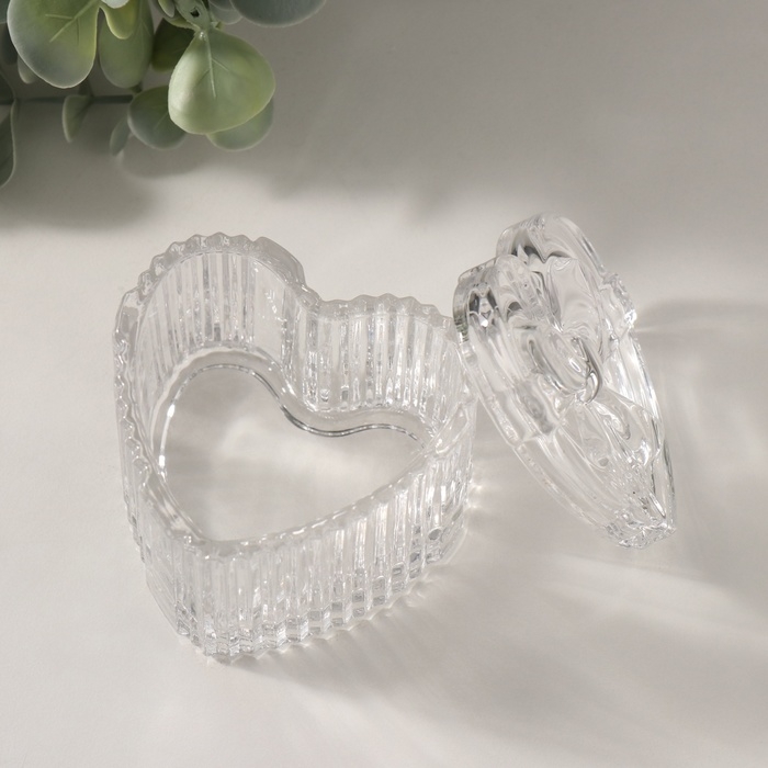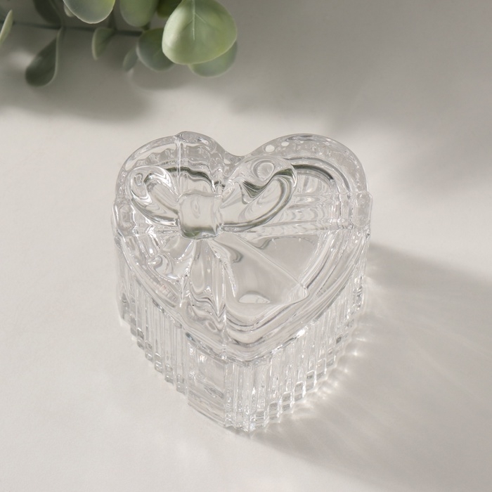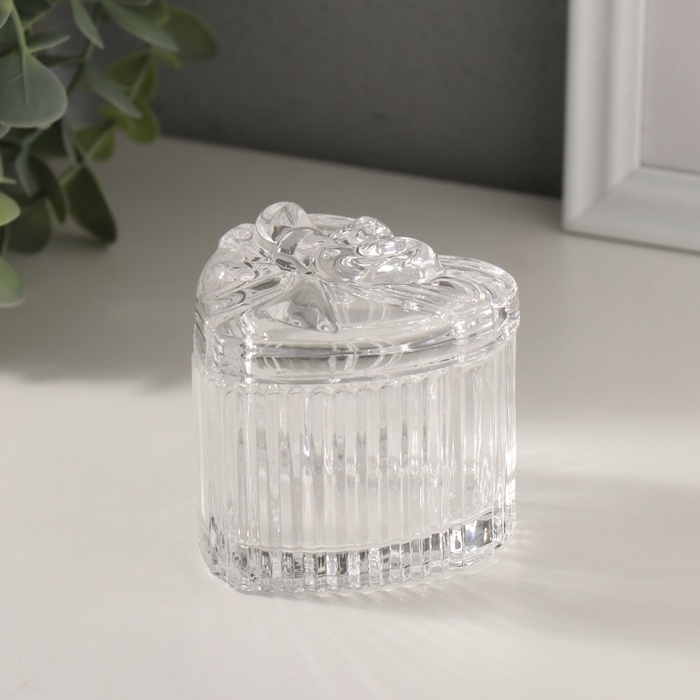 Шкатулка стекло "Подарок сердце" прозрачная 7,4х7,4х7,1 см