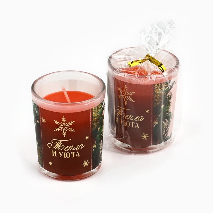Свеча с калькой новогодняя «Тепла и уюта» на Новый год на Новый год, аромат ваниль,5х6х5 см