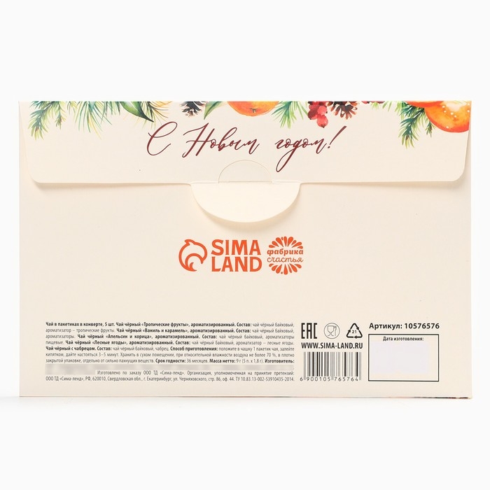 Новый год! Чай пакетированный, в конверте «Счастливого нового года», 5 шт