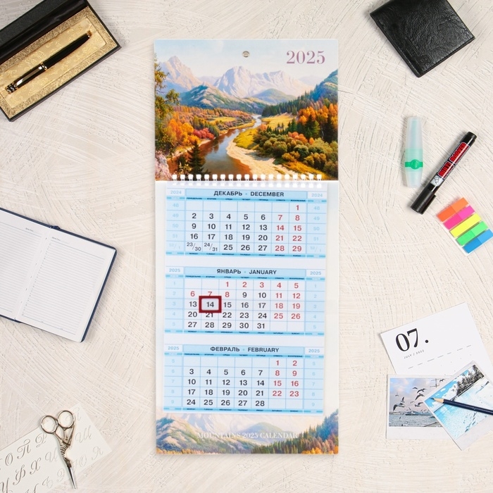 Календарь квартальный мини-трио "Осень горах" 2025 год, 19,5 х 44 см