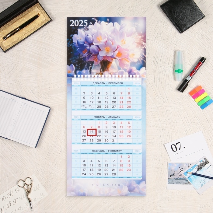 Календарь квартальный мини-трио "Грация цветов" 2025 год, 19,5 х 44 см