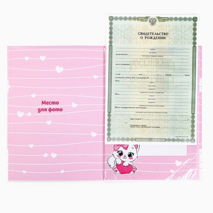 Папка для свидетельства о рождении "Наша малышка", розовая для девочки, 23,1х30,7см