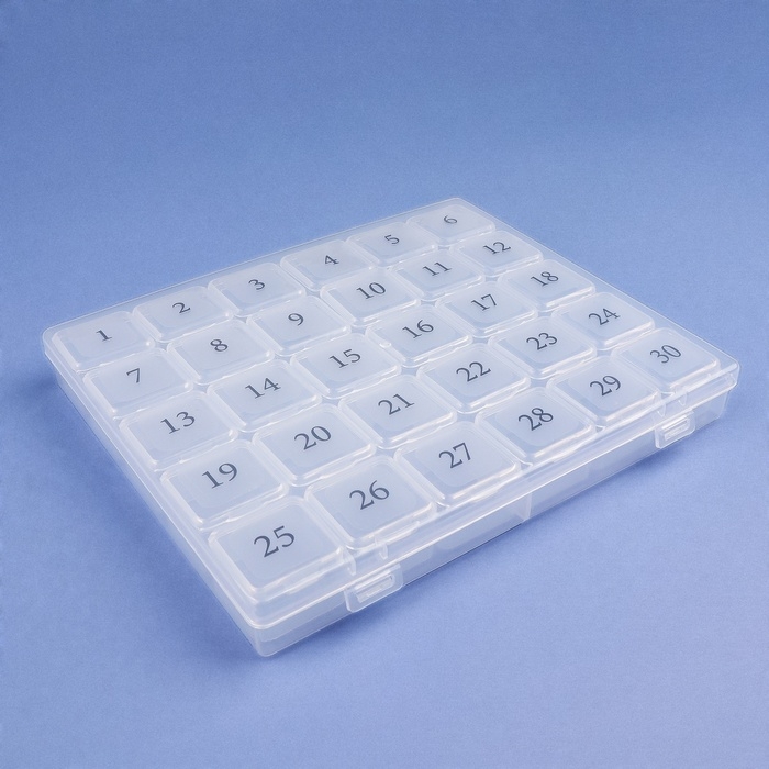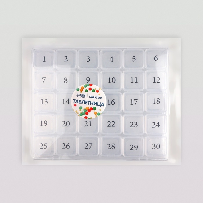 Таблетница - органайзер на месяц, 21,3 × 17,5 × 2,7 см, 30 секций, цвет прозрачный