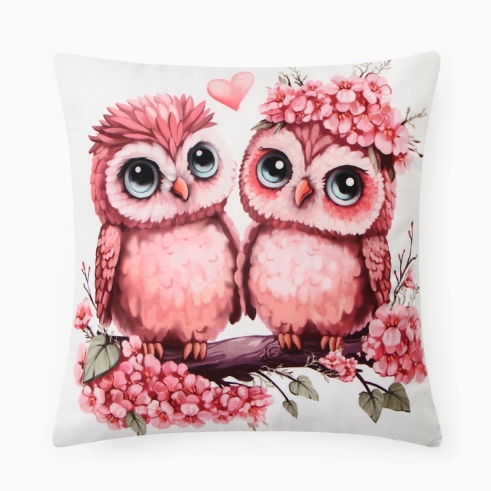 Подушка Этель "Совушки", 40*40 см, 100% п/э, велюр