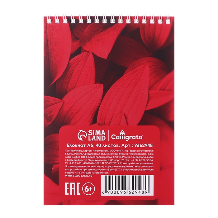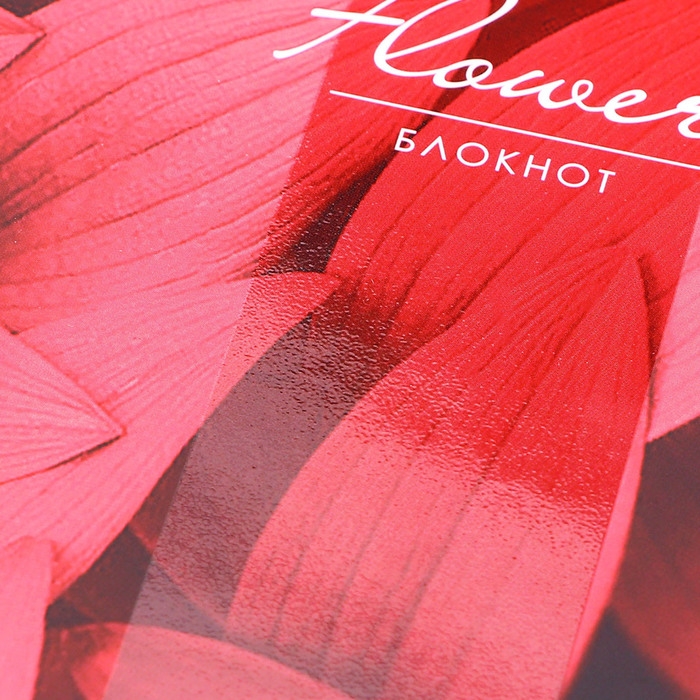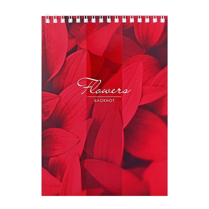 Блокнот А5, 40 листов в клетку на гребне "Лепестки", обложка мелованный картон, матовая ламинация, выборочный УФ-лак, блок офсет