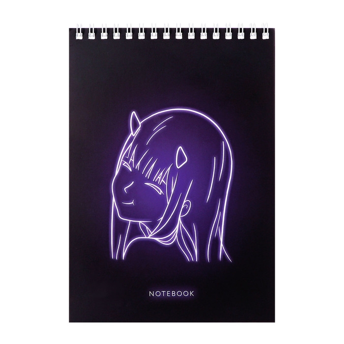 Блокнот А5, 40 листов в клетку на гребне "Нео анимэ ", обложка мелованный картон, матовая ламинация, выборочный УФ-лак, блок офсет