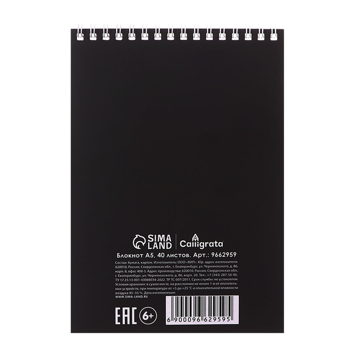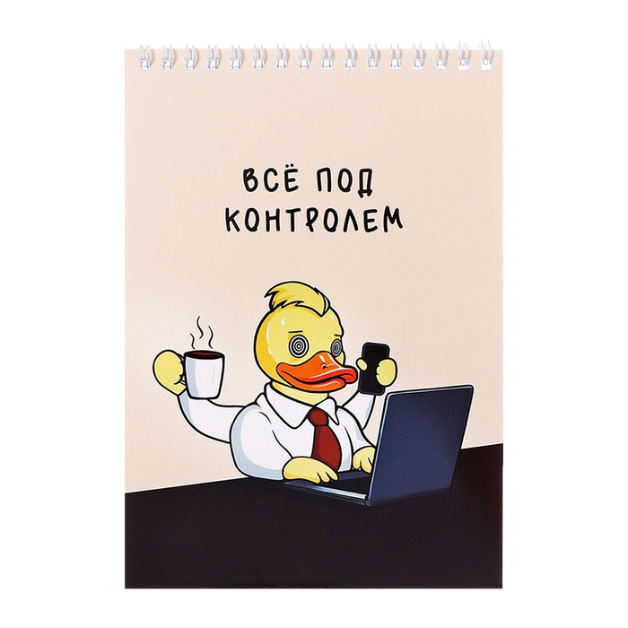Блокнот А5, 40 листов в клетку на гребне "Утка", обложка мелованный картон, матовая ламинация, выборочный УФ-лак, блок офсет