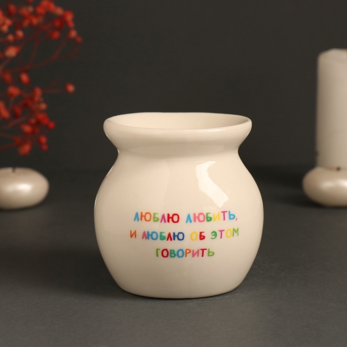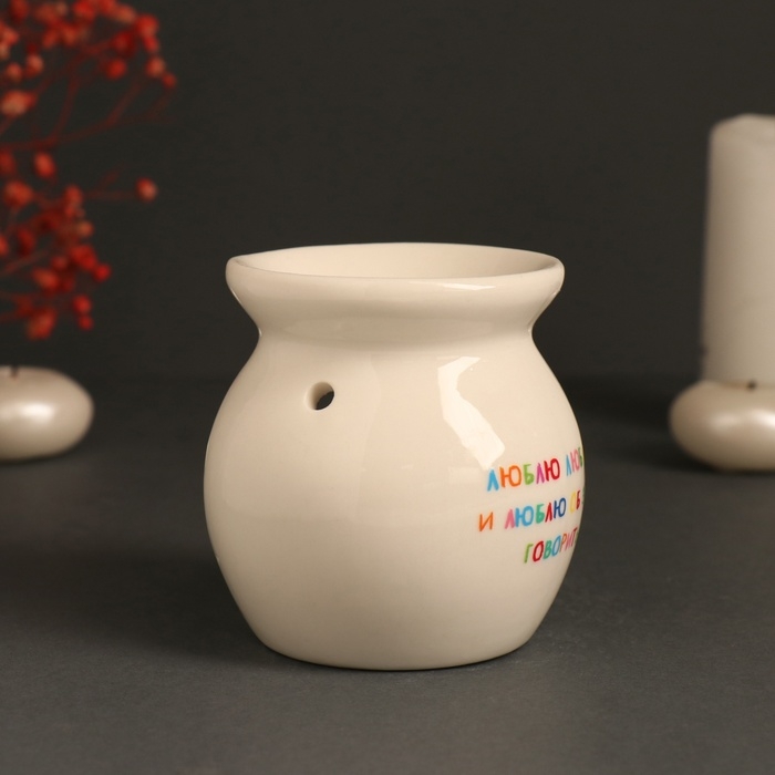Аромалампа керамика "Люблю любить и люблю об этом говорить" белая 7,2х7,2х7,8 см