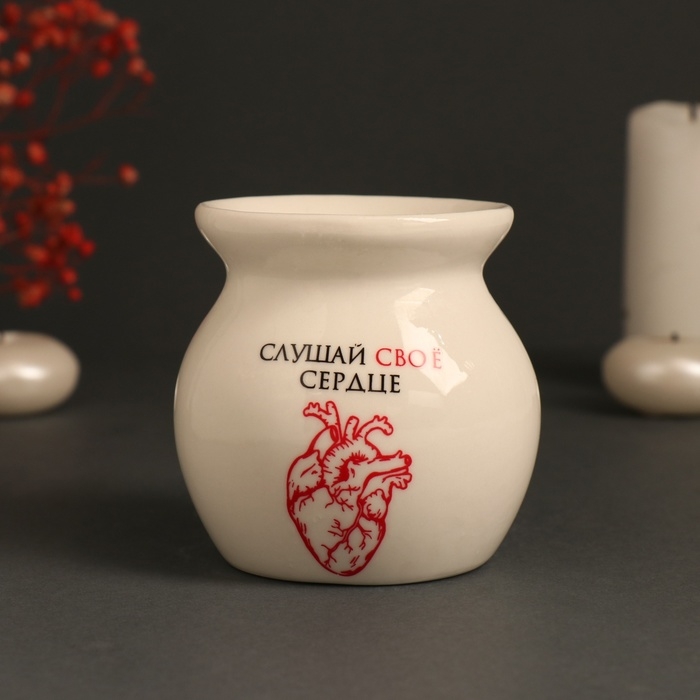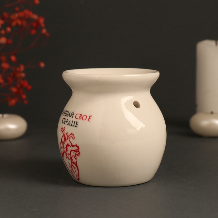 Аромалампа керамика "Слушай своё сердце" белая 7,2х7,2х7,8 см