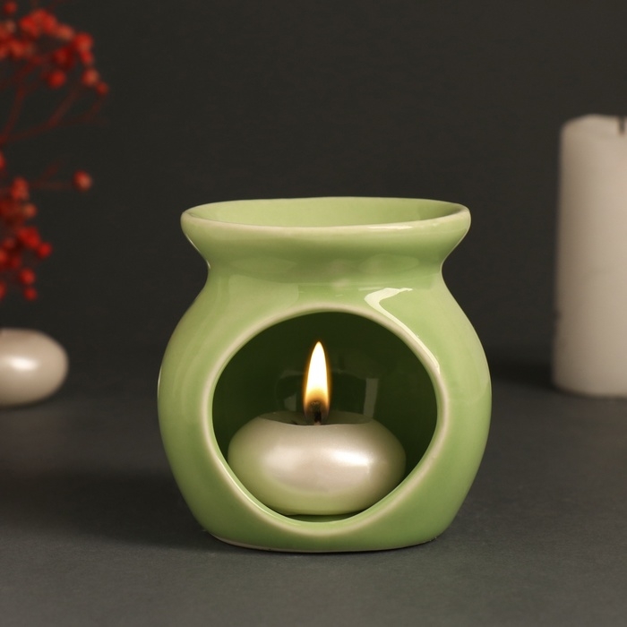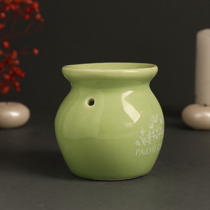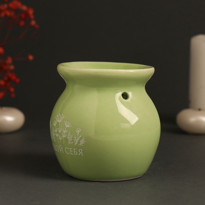 Аромалампа керамика "Радуй себя" светло-зелёная 7,2х7,2х7,8 см