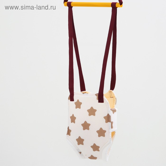 Посадите полугодовалого кроху в сиденье-штанишки. Малышу понравится активная игра, он будет подпрыгивать и качаться. Размер посадочного места можно настроить индивидуально, а за перекладину ребёнку будет удобно держаться.