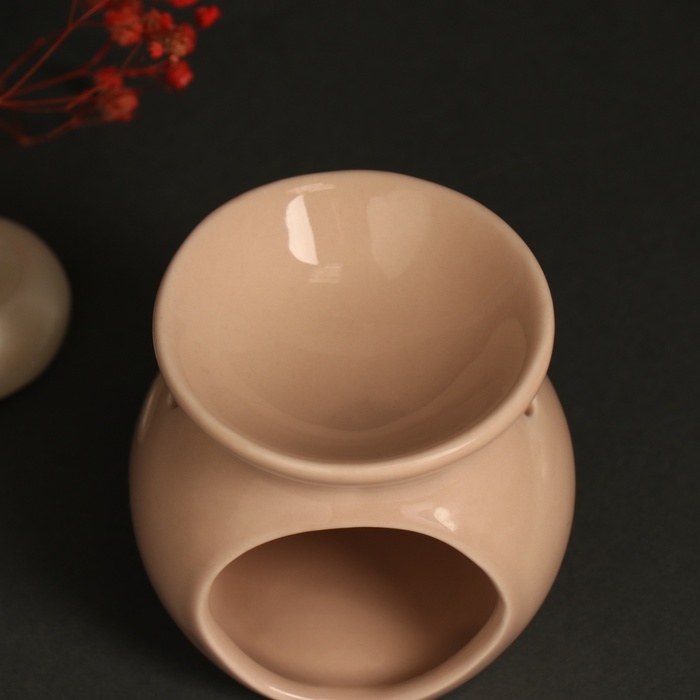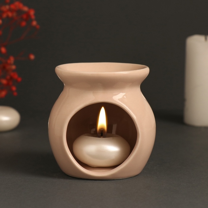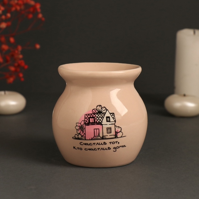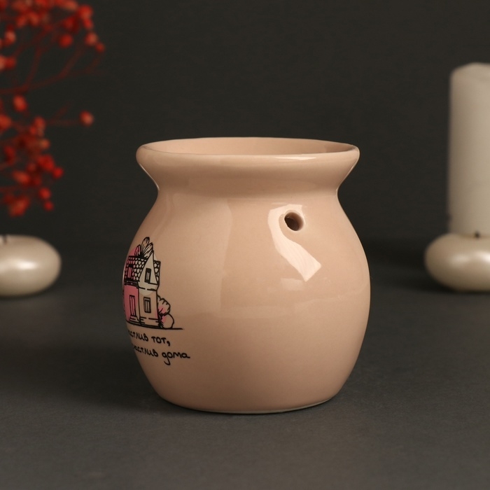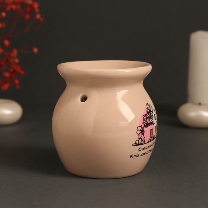 Аромалампа керамика "Счастлив тот, кто счастлив дома" бежевая 7,2х7,2х7,8 см