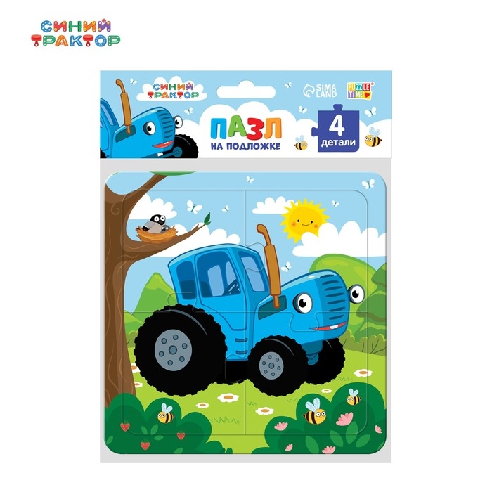 Пазл на подложке «Весёлый синий трактор», 4 детали