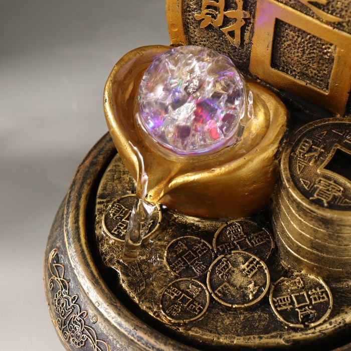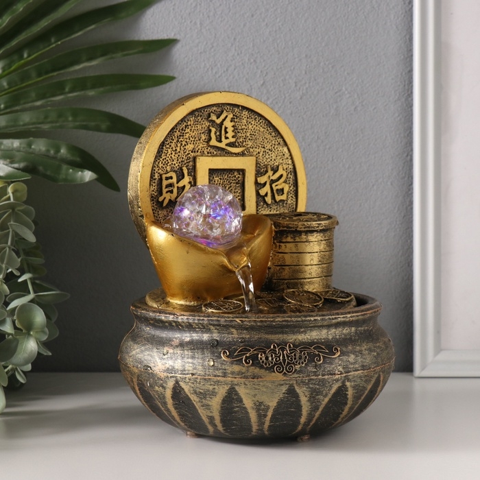 Фонтан настольный от сети, подсветка "Монета. Богатство" 16х16х20 см
