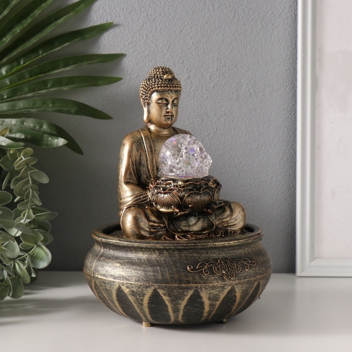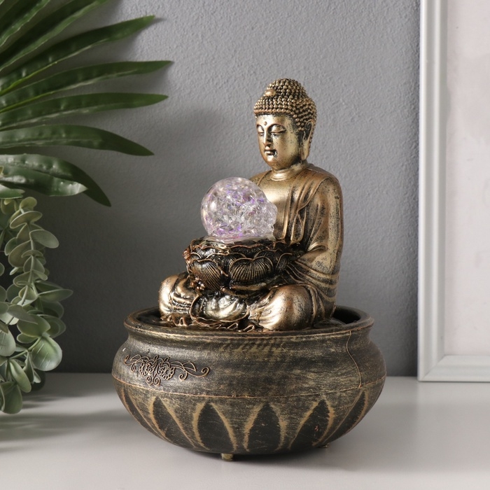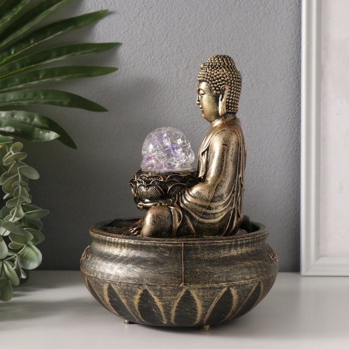 Фонтан настольный от сети, подсветка "Будда перед лотосом" 16х16х22 см