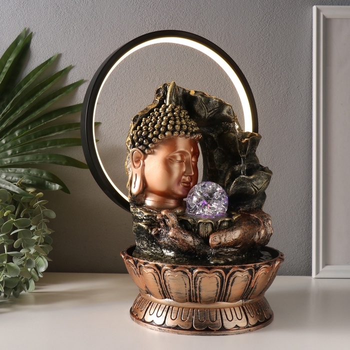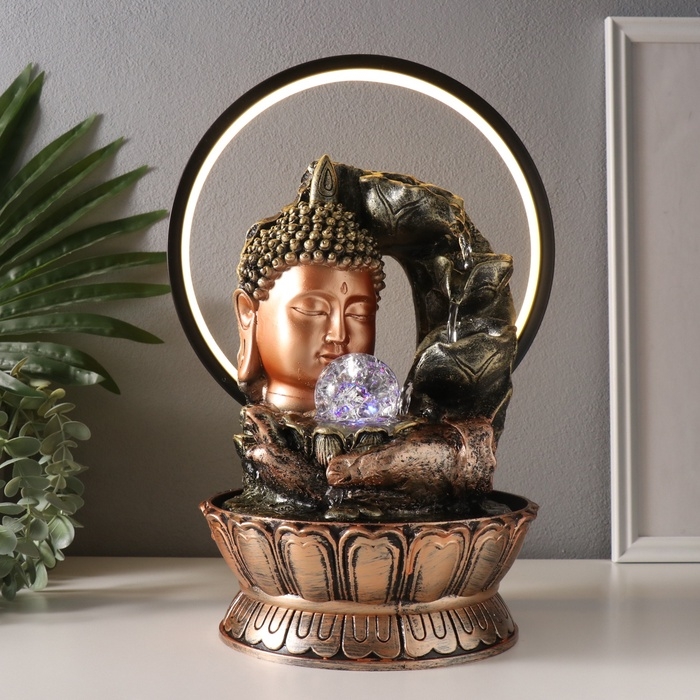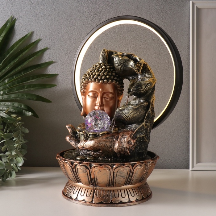 Фонтан настольный полистоун от сети, подсветка "Будда - поток сознания" 25х20х34 см