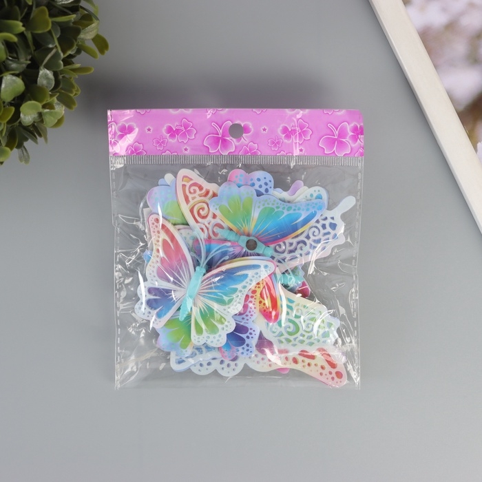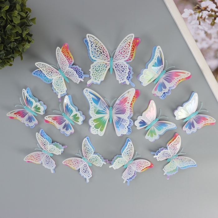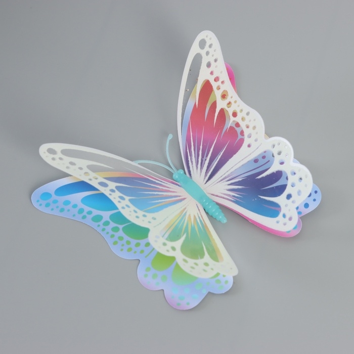 Магнит пластик светится в темноте "Цветные бабочки" двойные крылья набор 12 шт