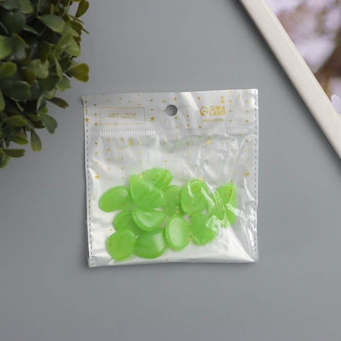 Декор для творчества пластик светится в темноте "Зелёные камешки" набор 12 шт