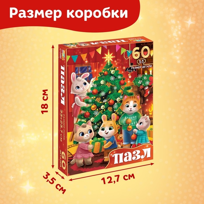 - Пазлы поставляются в праздничной коробке размером 18 × 3,5 × 12,7 см.
