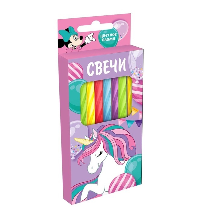 Набор свечей в торт 6 штук, с цветным пламенем, Минни и Единорог